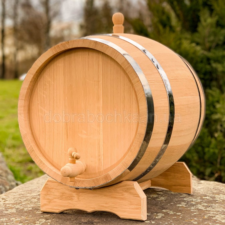 Дубовая бочка обжигается внутри (средняя степень обжига), подходит для 90% напитков.