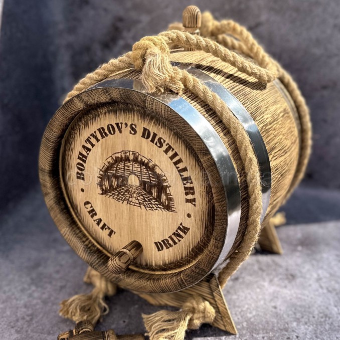 Дубовая бочка обжигается внутри (средняя степень обжига), подходит для 90% напитков.