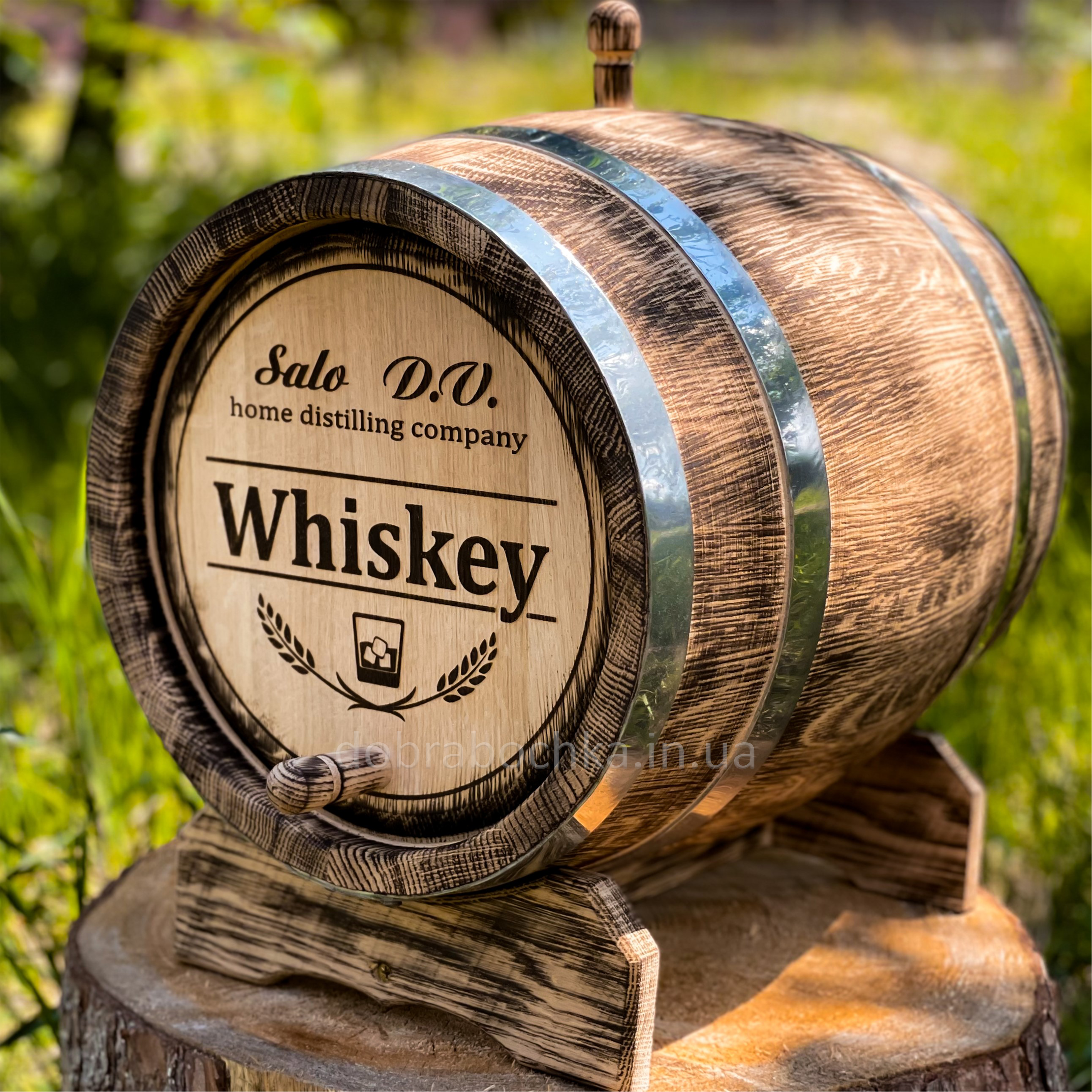 Дубовая бочка обжигается внутри (средняя степень обжига), подходит для 90% напитков.