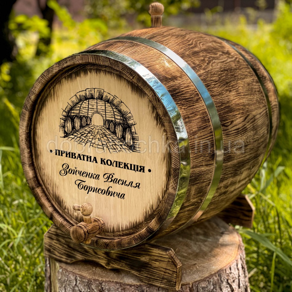 Дубовая бочка обжигается внутри (средняя степень обжига), подходит для 90% напитков.